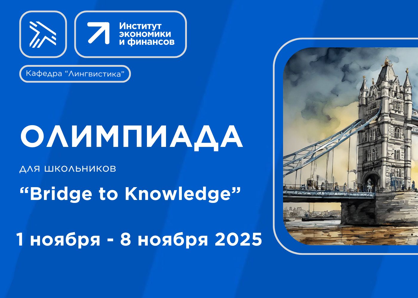 Кафедра "Лингвистика" ИЭФ РУТ (МИИТ) приглашает школьников 9-11 классов принять участие в олимпиаде по английскому языку "Bridge to Knowledge" 🇬🇧.